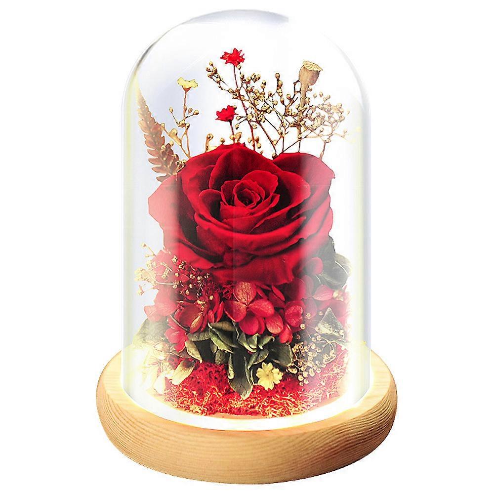 Romantic Warm Light, Unique Gift, Preserved Flower Gift with Slow Color-Changing Effect, Handmade Real Flowers Encased in Glass Dome for Home