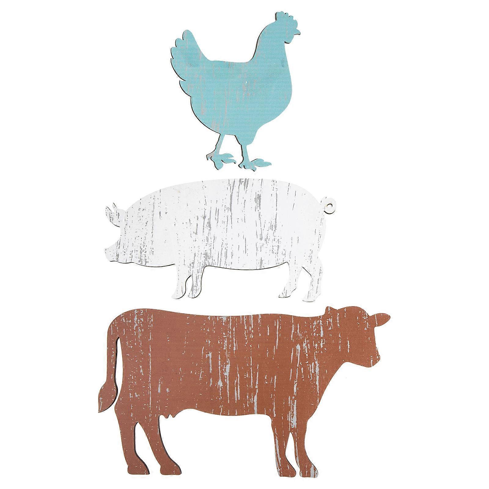 Rustic Farmhouse Animal Wood Sign Decor with Chicken, Pig, and Cow Shapes for Cozy Bedroom and Living Room Wall Art
