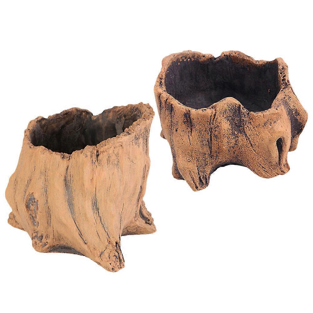 Rustic Cement Flower Pots Simulated Stump For Planting And Succulents 2 Pcs