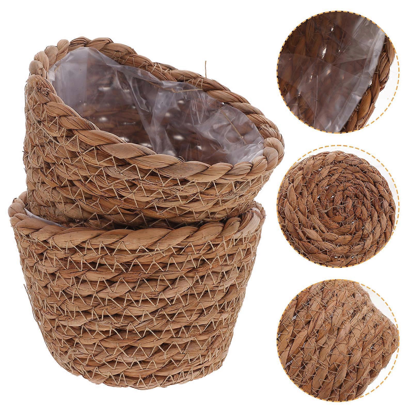 Rustic Woven Flower Baskets Natural Seagrass Plant Containers with Liners for Home Decor Gardening