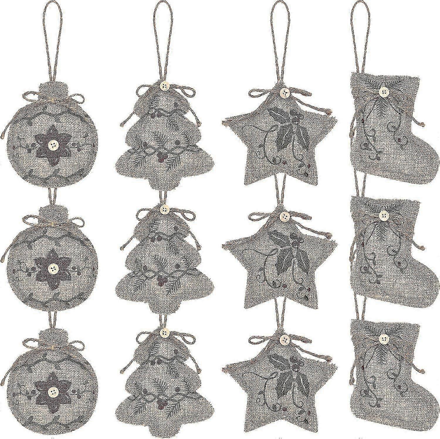 Rustic Christmas Burlap Tree Ornaments Farmhouse Hanging Decorations Christmas Stocking Tree Ball Shaped Decor For Christmas Party