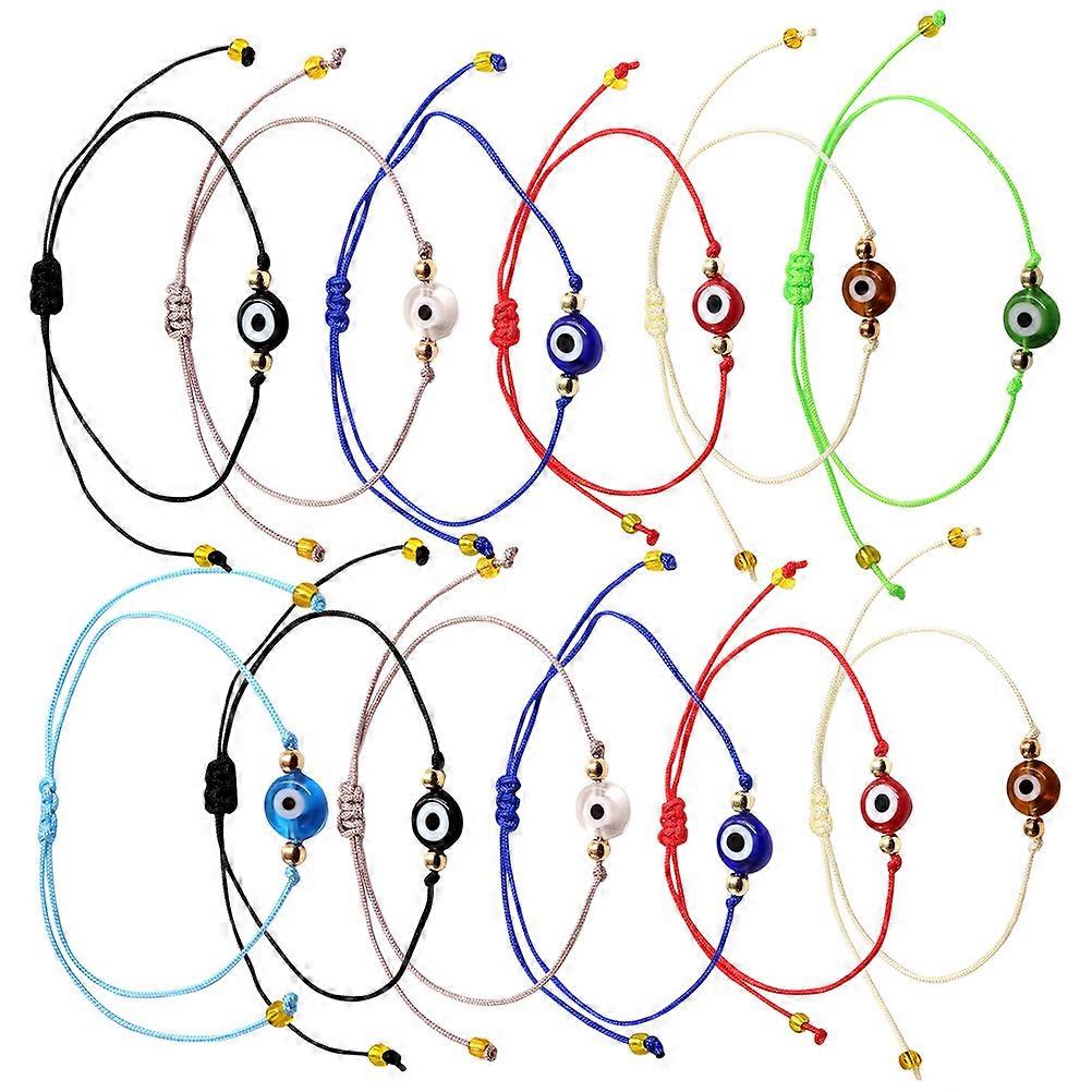 Adjustable Evil Eye Bracelets Set of 12 Rope Wristbands for Men Women Style Protective Jewelry for Casual Party Sports Events
