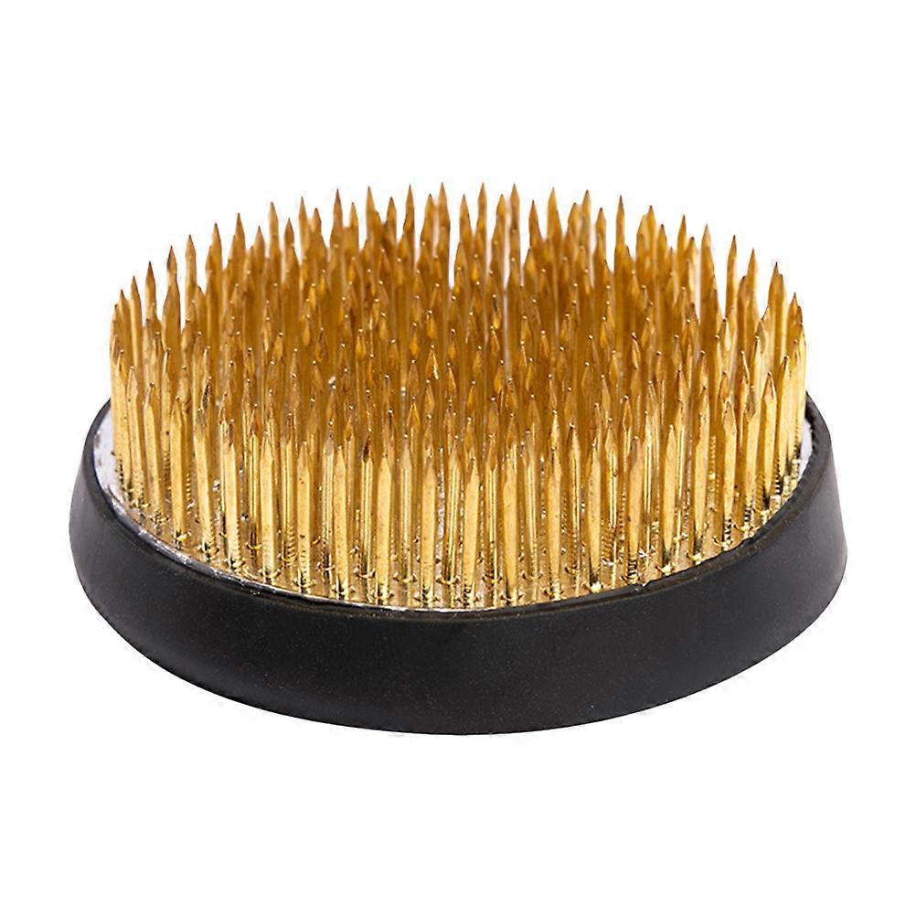 Keeps and stabilizes your flowers upright while allowing water and nutrient absorption. It can help to maintain the beauty of flower and floral for a long time. Nonslip rubber base, easy and convenient to use, prevents scratches or damage to your vase or other container. Features -Material: Copper - Hold your flower firmly, you can freely design your flower art, help you to learn flower arrangement. - Use it to make a beautiful flower decoration for a special occasion or just for fun. - Good copper and rubber material, no fading, no harm, safe for use. Chic and elegant round shape, good decoration effect. - Use this flower arrangement needle base to make a beautiful centerpiece or present, design and create special flower art. - Suitable for home decoration, gardening, flower arrangement, party decoration, etc. Package list: 1 x flower arrangement needle holder