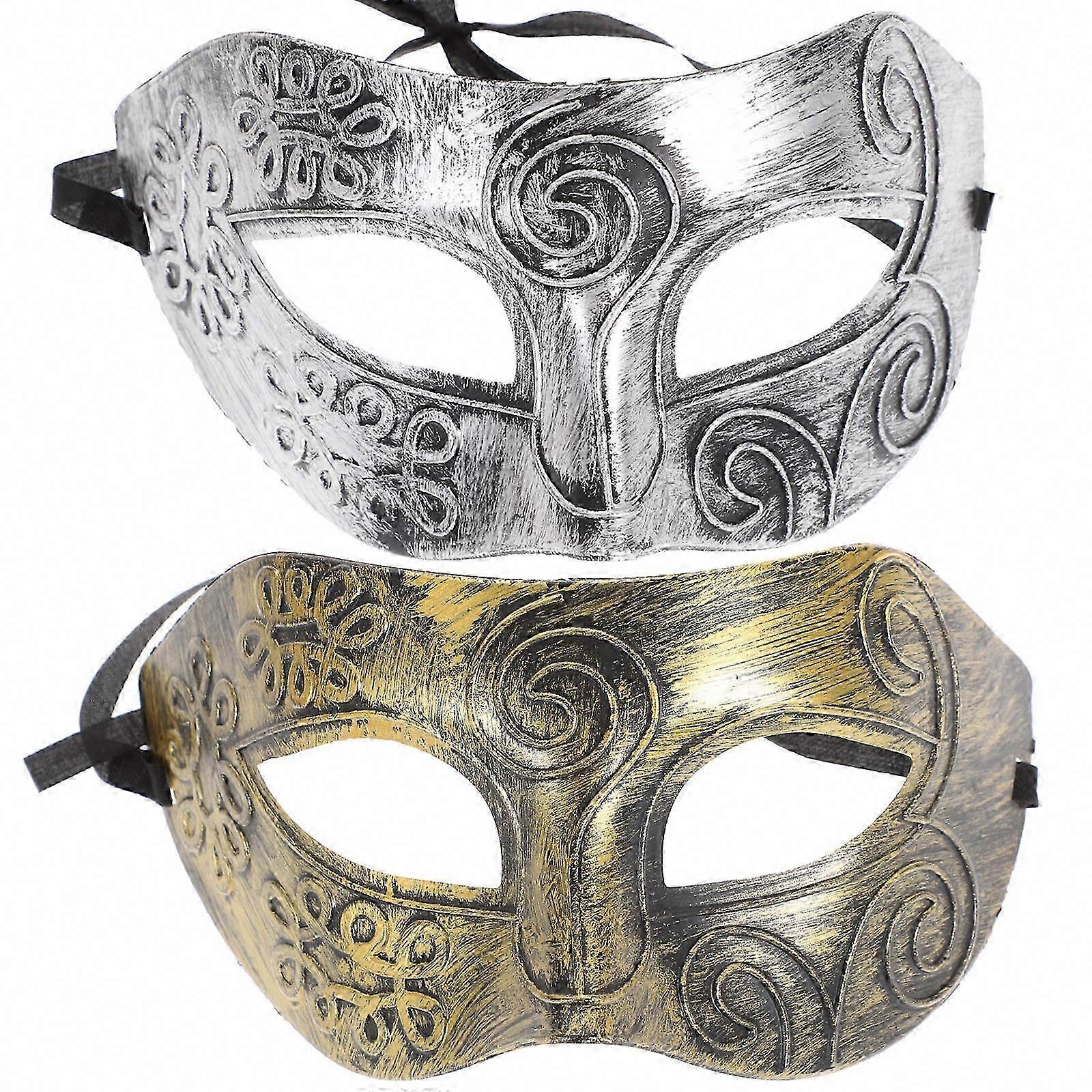 Roman Masks for Men, Bronze Half Face Masquerade Ball Halloween Party Costume 2Pcs