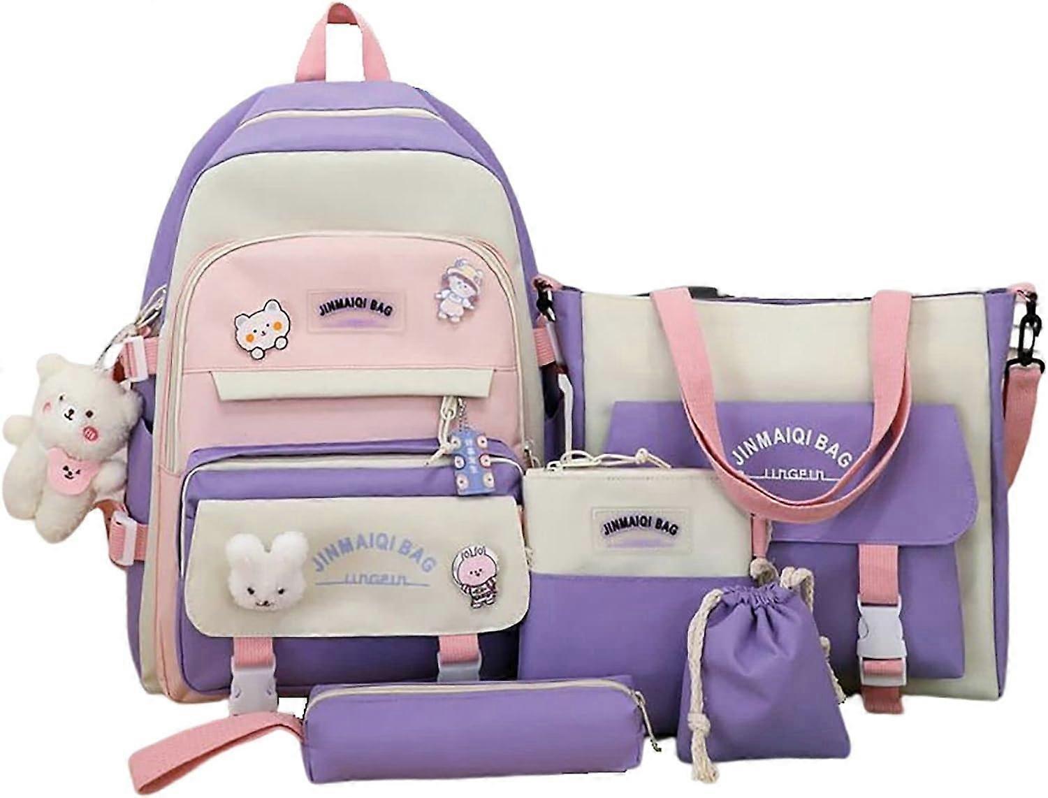 Backpack 5Pcs Set for Student with Cute Bear Accessories - School Bags for Teen Girls Back to School Supplies