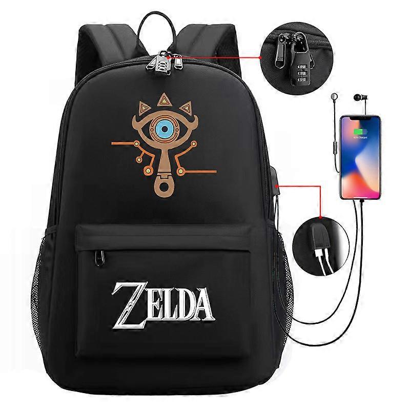 Zelda Legend Backpack with USB Charging Port, Breathable Durable School Bag with Air Cushion Straps