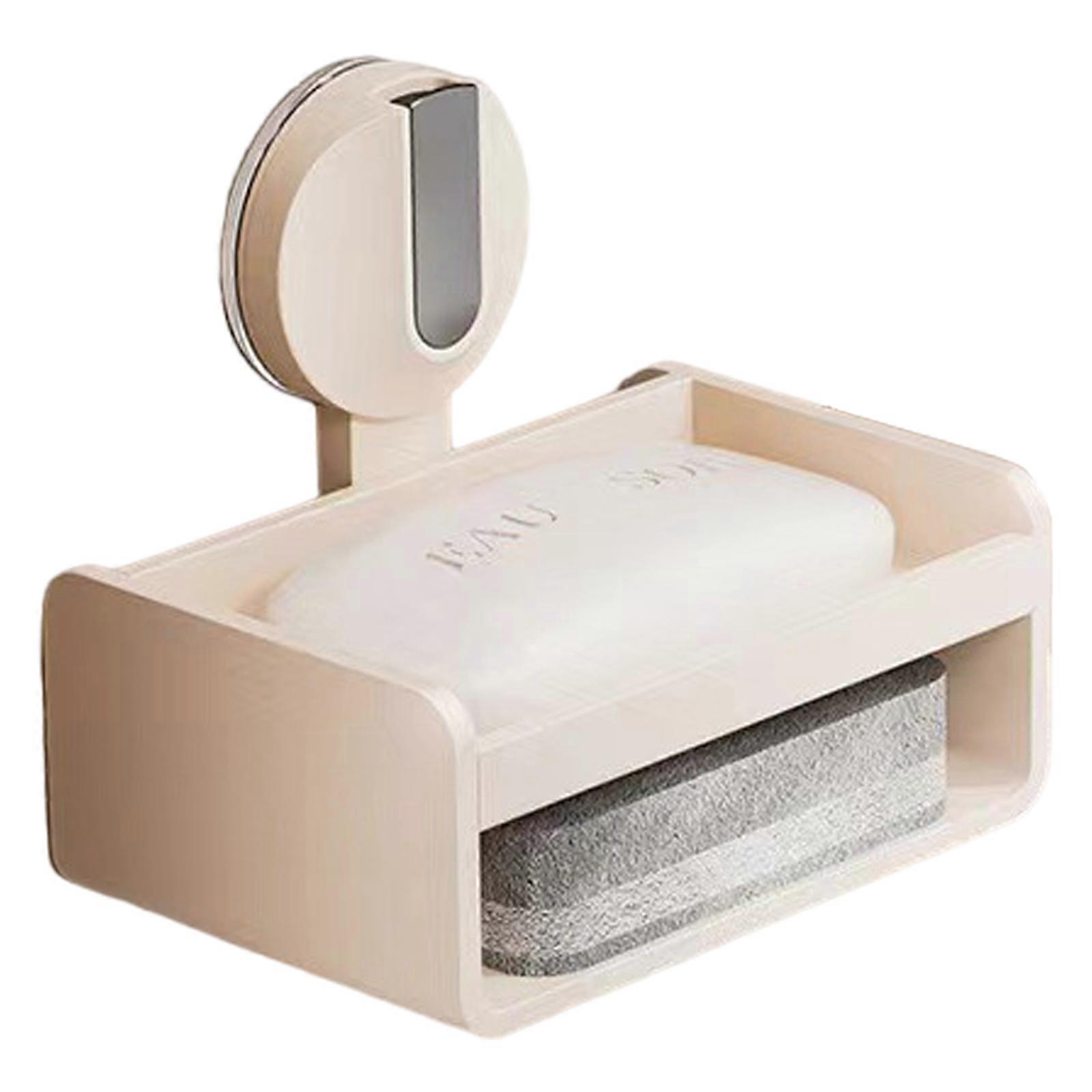Soap Holder Wall Mounted Soap Dish with Hook Not Require Drilling for Shower/Bathroom/Kitchen Decoration Milky White