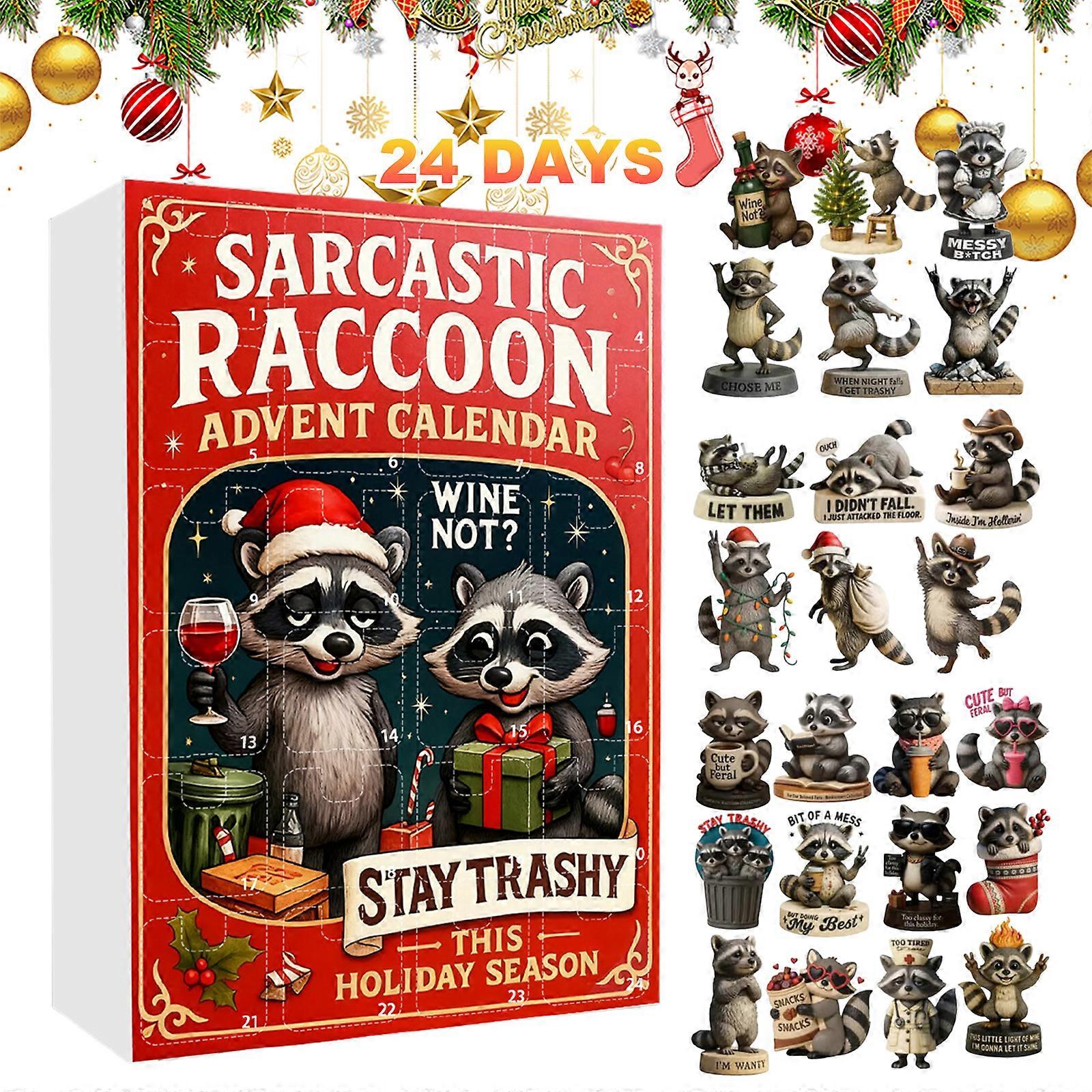 Sarcastic Raccoon Advent Calendar 2025 with 24 Humor Jokes Cute Raccoons Xmas Countdown Calendar for Christmas Tree Ornaments