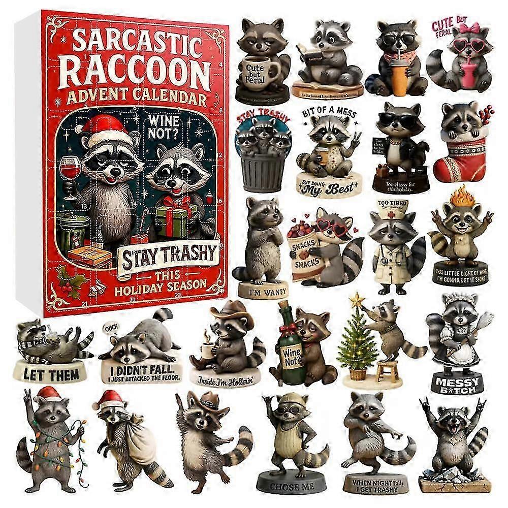 Sarcastic Raccoon 24 Days Christmas Countdown Calendar with 24 2D Flat Raccoon Ornaments Christmas A