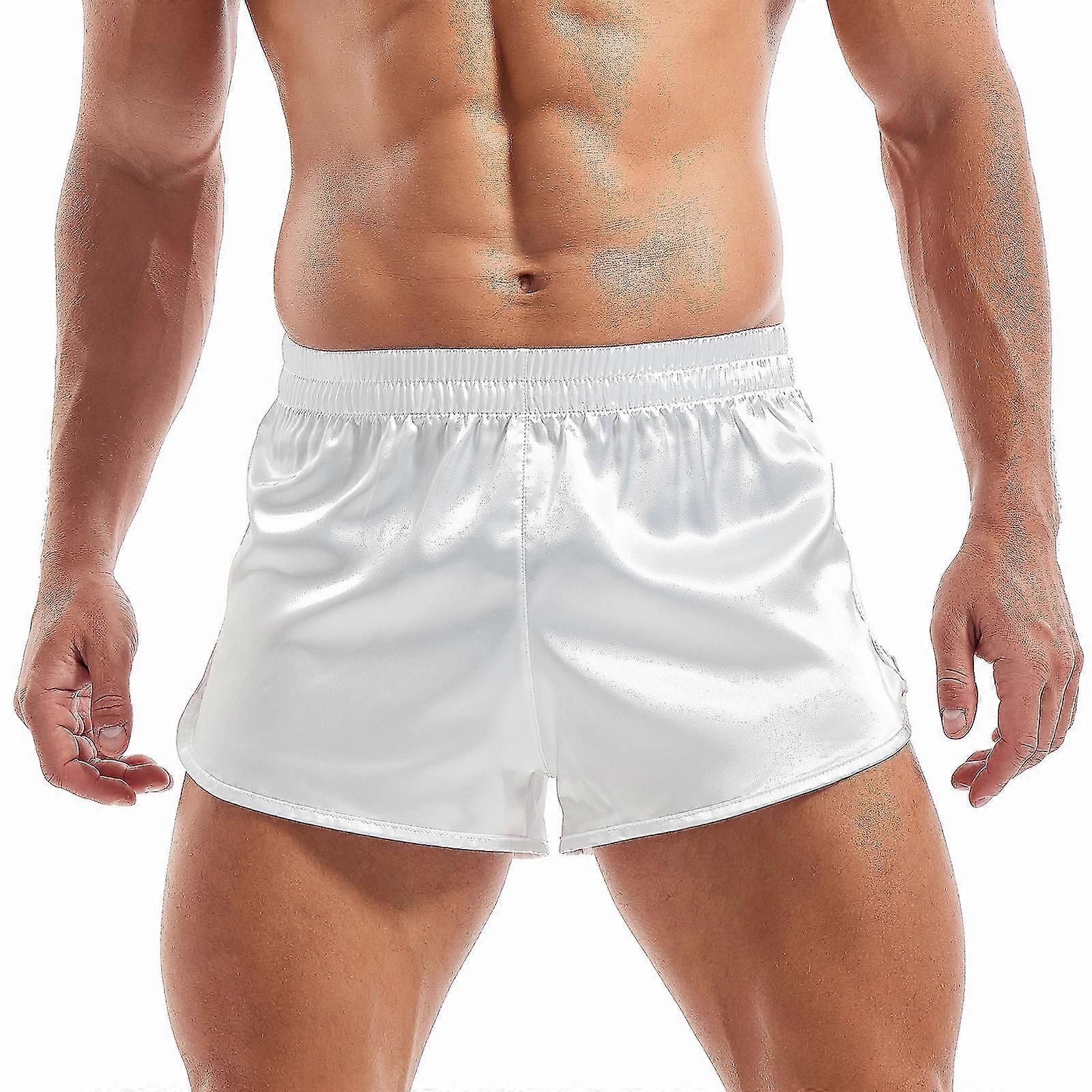 Satin Underwear Boxers Men's Sexy Boxer Briefs Smooth Silk Pajamas Shorts Loose Split Man Lounge Boxershorts Home Sleep Bottoms