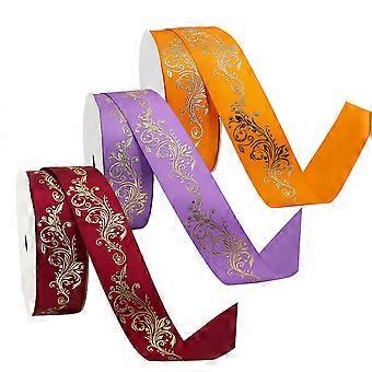 Satin with Glitter stamp Wired Ribbon for Craft Packing, Gift Wrapping, DIY Craft, Decoration- 2.5cm x 5 Yards x 3Roll