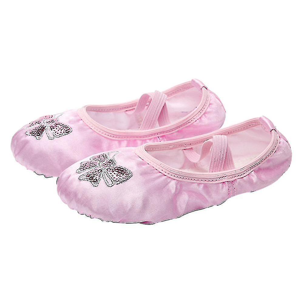 Satin Ballet Practice Shoes Embroidery Sequins Shoes Sole Dance Shoes For Kids Girls - Size 33 (pink)