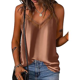Satin Mesh V Neck Tank Top Women Cami Top Silk Camisole Casual Blouselarge