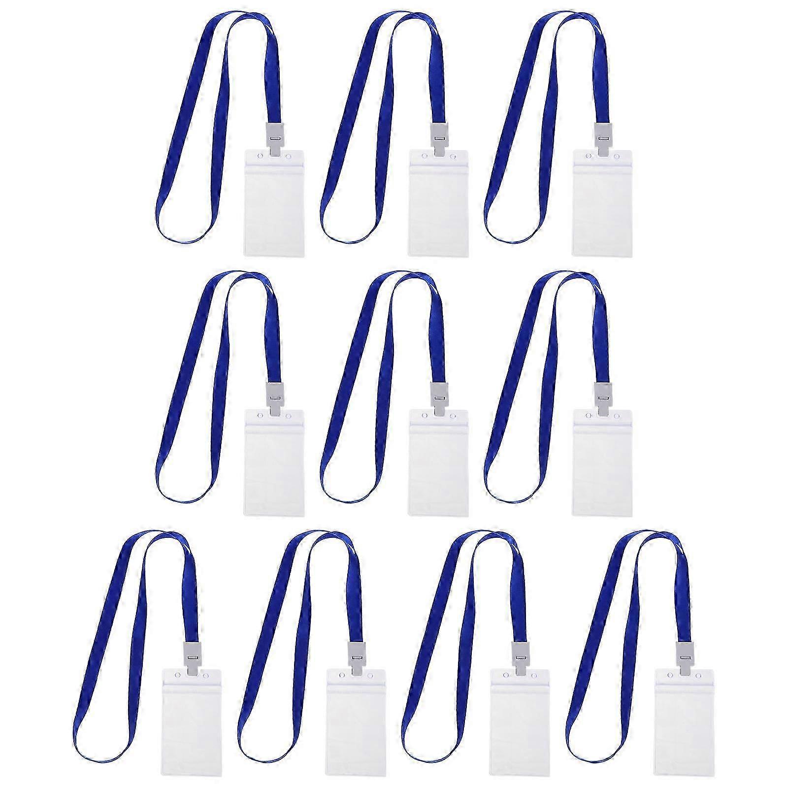Clear Lanyards For Id Badges Lanyard Transparent Holder Waterproof Badge Holder ID Sleeve Travel Use Blue 10Pcs