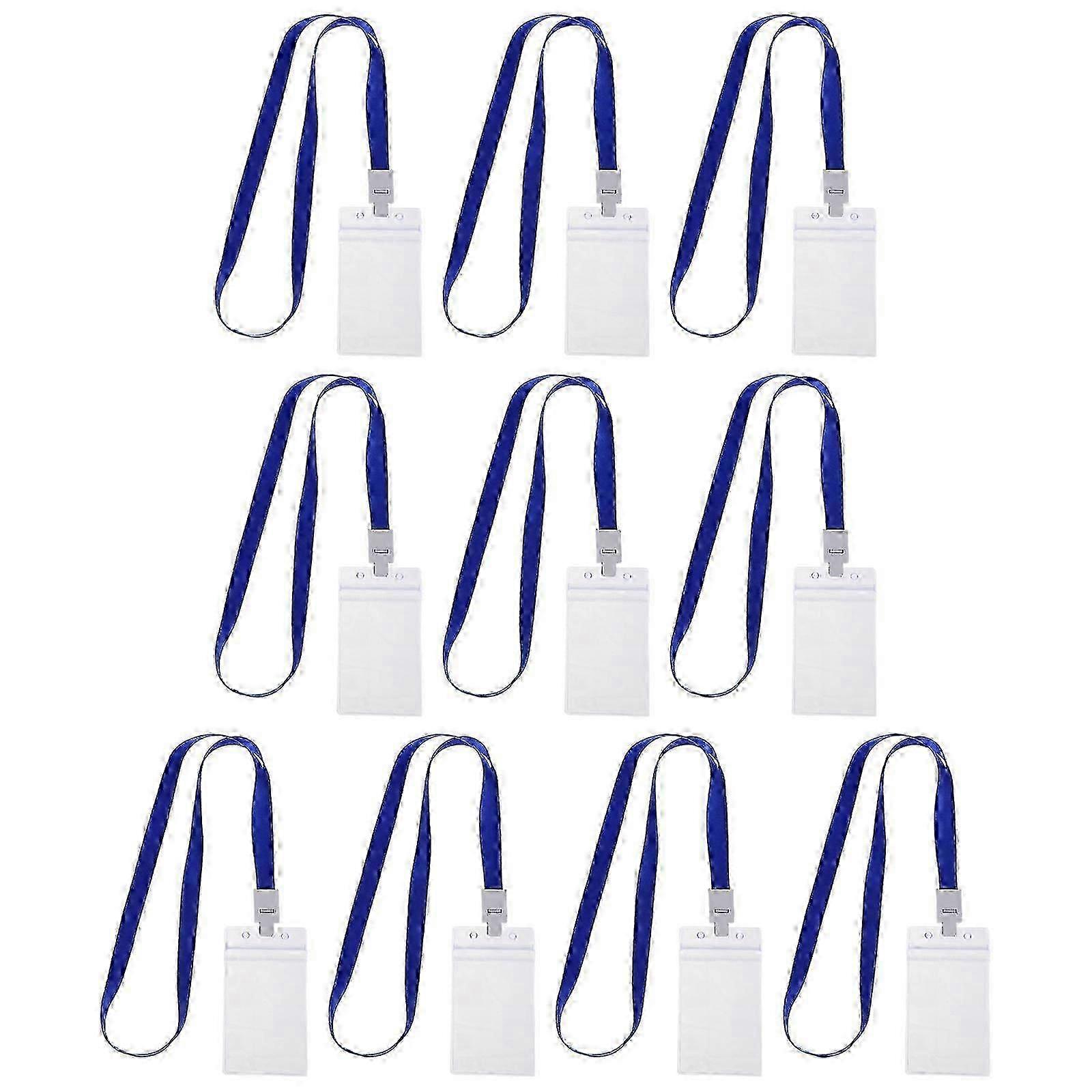 Clear Lanyards For Id Badges Lanyard Transparent Holder Waterproof Badge Holder ID Sleeve Travel Use Blue 10Pcs