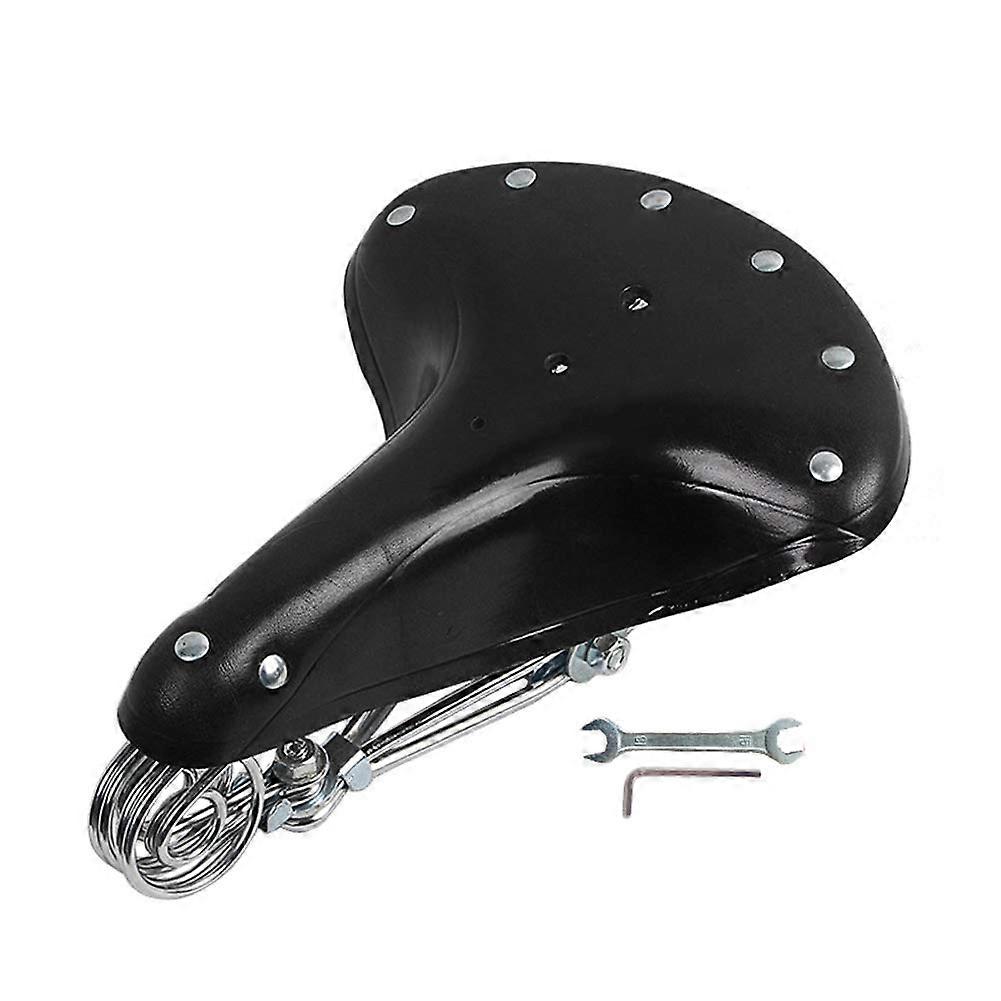 Heavy Duty Leather Bike Saddle Seat Black, Fine Tuned Cowhide Spring Cover, Includes 2 Keys, Universal Fit