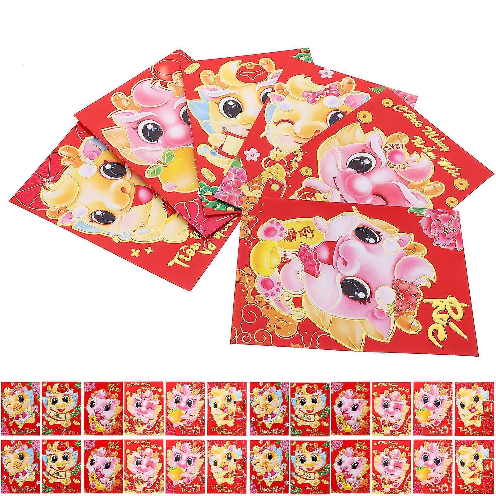 Lunar New Year Dragon Red Packet Red Envelopes Chinese New Year Luck Money Holder 11.5X8X0.2CM 30Pcs