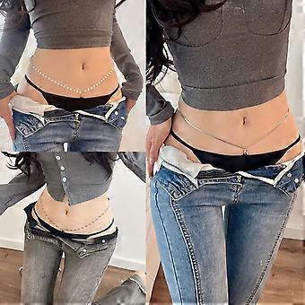 Sexy Panties Thongs for Women Pearls Metal Waist Chain G-String Low-Rise T-Back Underpants Seamless Jewelry Briefs M