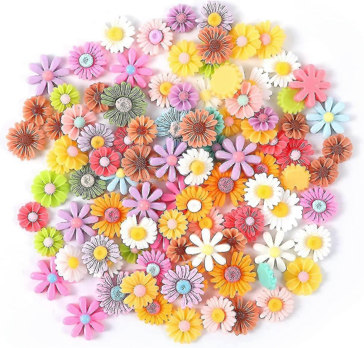 Set Of 100 Flower Resin Charms, Daisy Pearls For Diy, Scrapbooking, Jewelry Manufacturing, Handcrafted Decorations (mixed Colors)