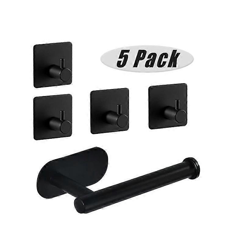 Set Of 5 Stainless Steel No Drill Towel Bars - Ideal For Bathroom, Toilet, Kitchen - Black