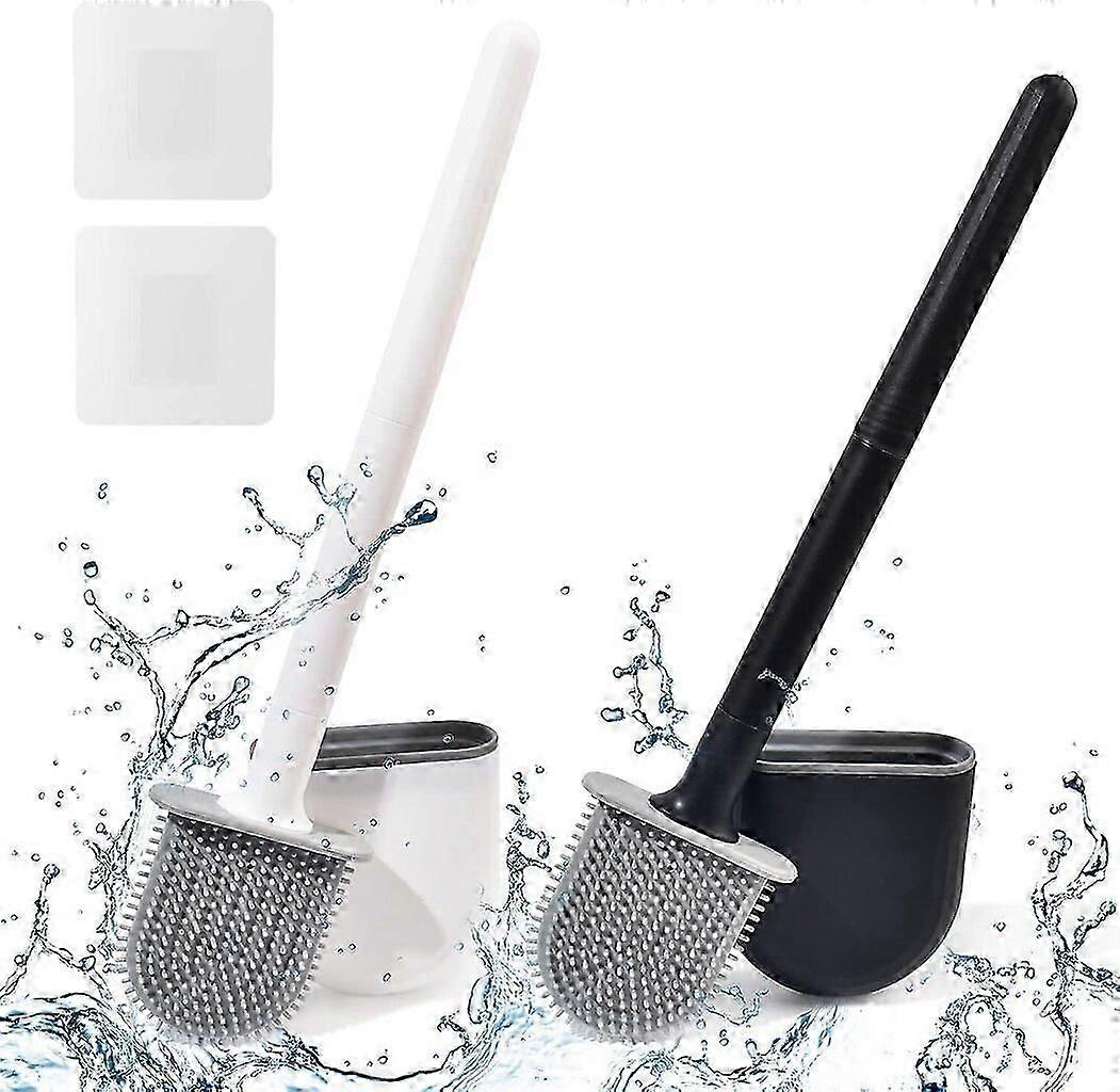 Silicone Toilet Brush Set, Wall-Mounted, Quick-Drying, Anti-Drip, Black and White