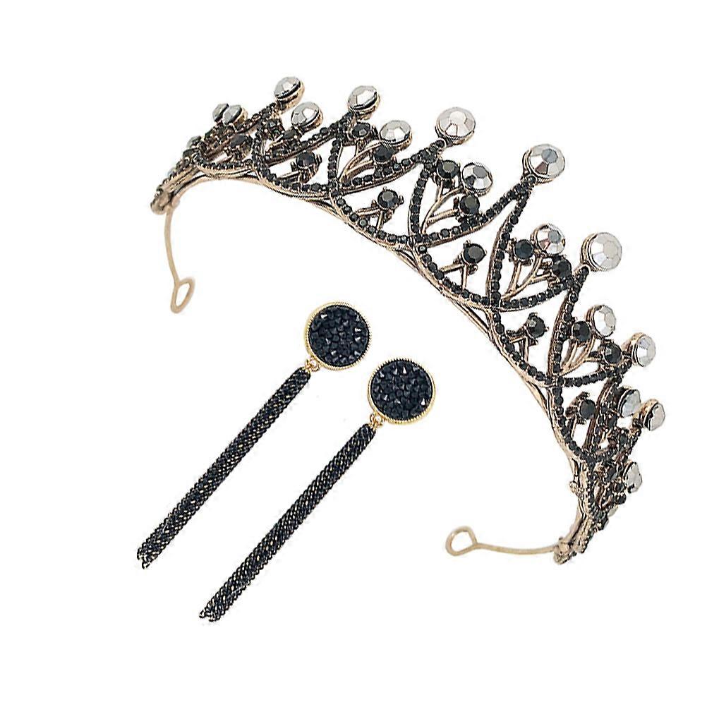 Baroque Crown and Earrings for Women Headdress 3Pcs Vintage Wedding Set