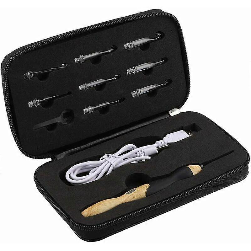 LED Crochet Hook Set, 9 in 1 USB Interchangeable Crochet Hooks, Lnous Rechargeable Crochet Hooks, Hand Weaving Needle Sewing Tool Set (Silicone Handle