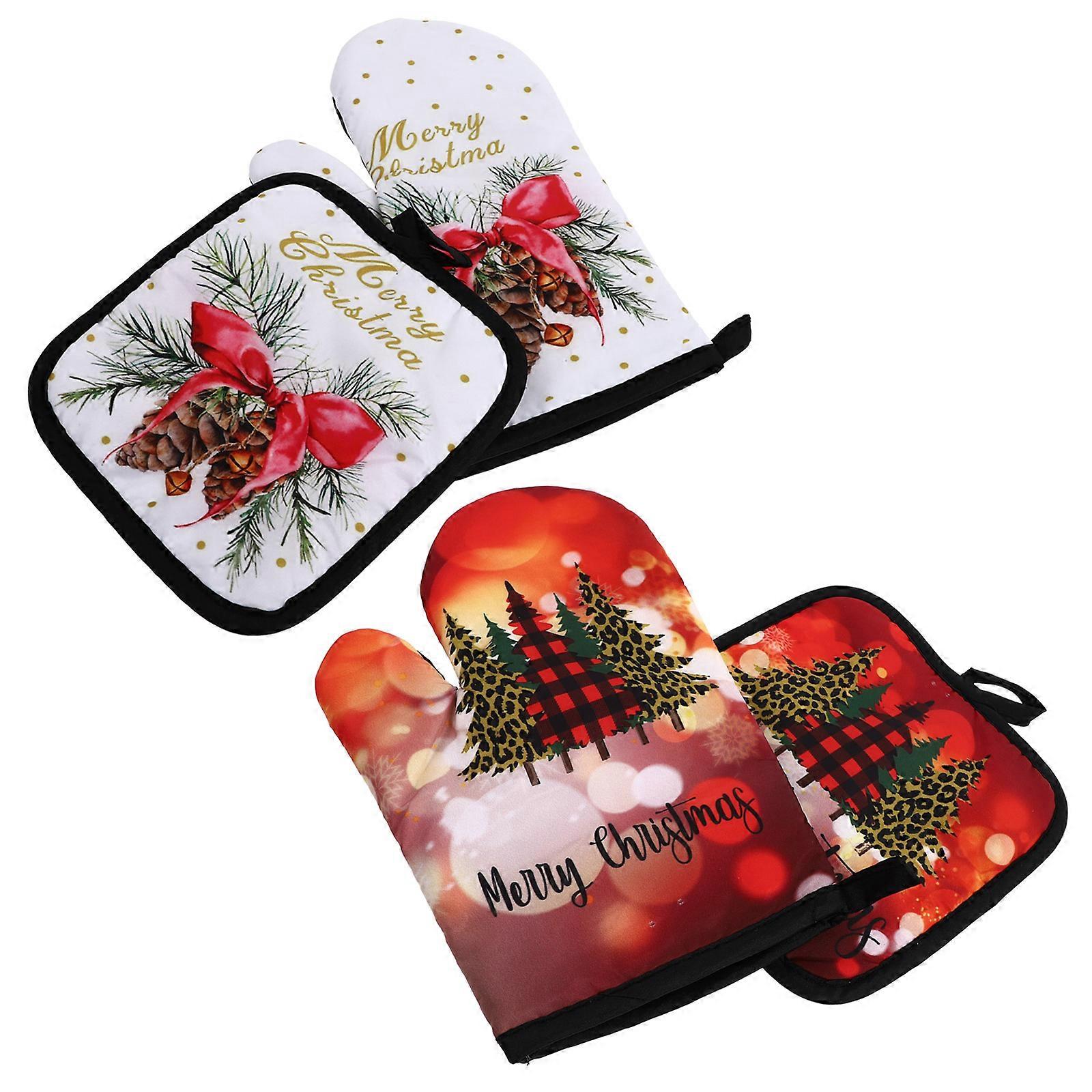Kitchen Oven Glove Heat Resistant Set for Cooking 1Set Christmas Theme