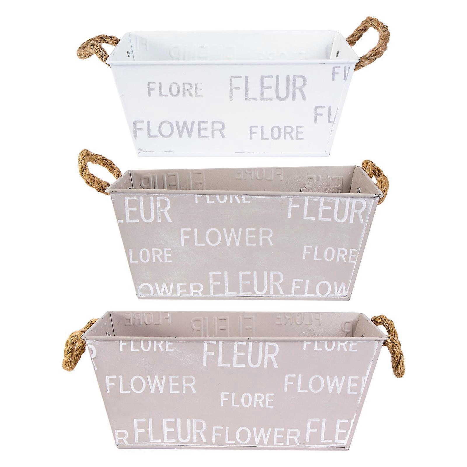 Garden Flower Pots Set 3pcs Rope Design Iron Crafted Planting Containers Random Color