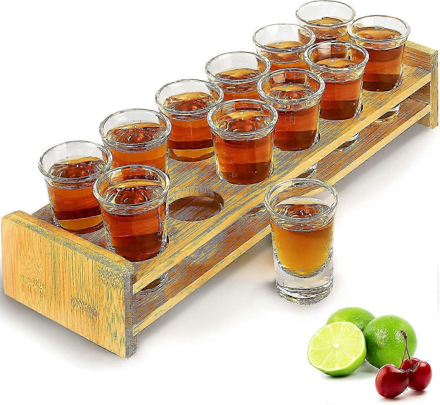12-Piece Shot Glass Set with Tray - 30ml/10oz Thick Base Clear Glass for Party, Bar, Club - MJS-12