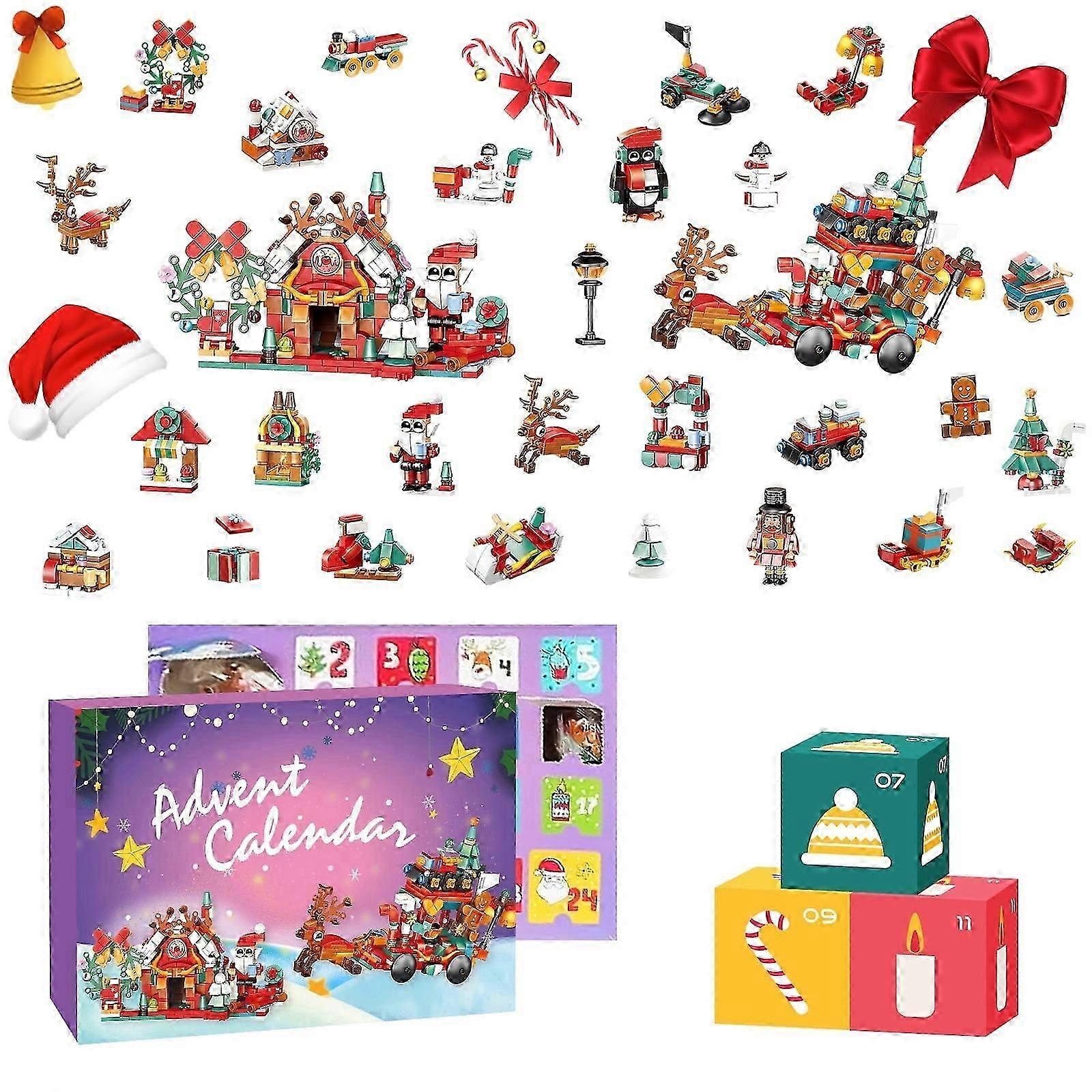 Advent Calendar 2024 Building Blocks Set - 24 Day Christmas Countdown Kit with Gingerbread House, Xmas Tree, Santa - Compatible with LEGO - Ideal