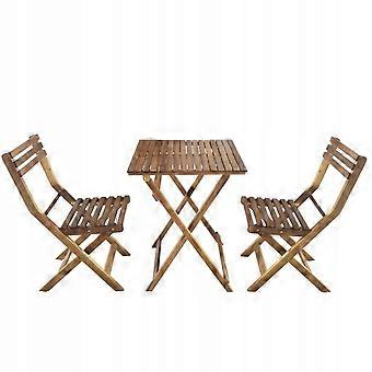 Säten, ryggstöd och bordsskiva gjorda av akaciaträ