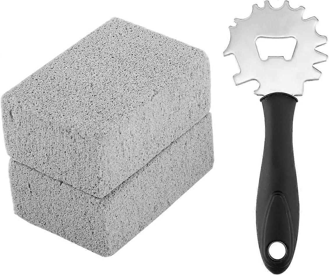 Grill Cleaning Tools Set - Stainless Steel Scraper and Reusable Cleaning Brick