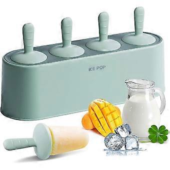 Popsicle Mold Set 4 Pieces Homemade Silicone Popsicle Maker Easy Release Ice Cream Molds Reusable DIY Pop Molds (Green)