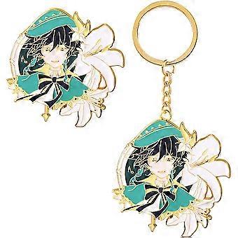 Genshin Impact Fiugre Keychain Brooch Set - Eye of God Luminous Key Chains Cartoon Character Key Accessories for Anime Lovers Venti Set -