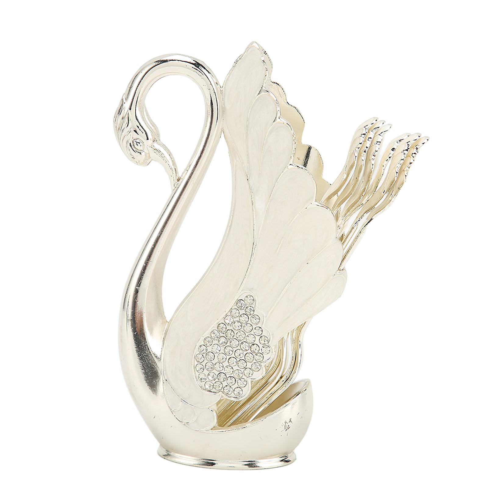 Coffee Spoons Set Silvery Modern Style Alloy Material Polished Effect Burrs Free Teaspoons Fork Set for Party Bar Fork