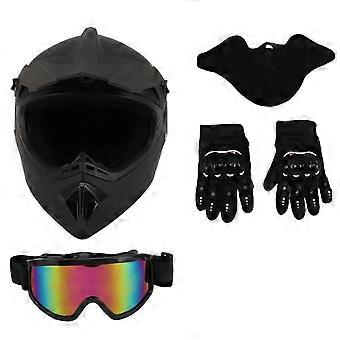 Off Road Helmet Set Black XL ABS Breathable Adjustable with Windproof Goggle Protective Visor Gloves Dirt Bike Helmet Set for Beach Bike Karting