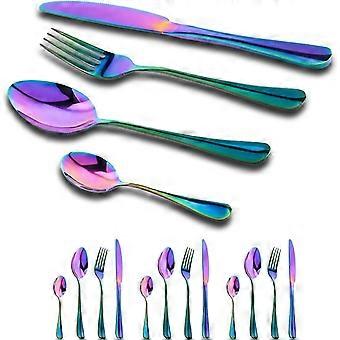 Cutlery Set,16-piece Stainless Steel Cutlery For 4 People Dinner Spoon Knife And Fork Sets,tableware And Flatware Rainbow Cutlery