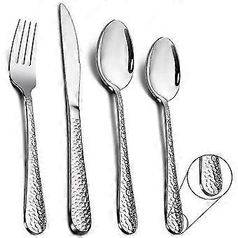 Cutlery Set, 24 Piece Hammered Flatware Cutlery Sets, Stainless Steel Silverware Set