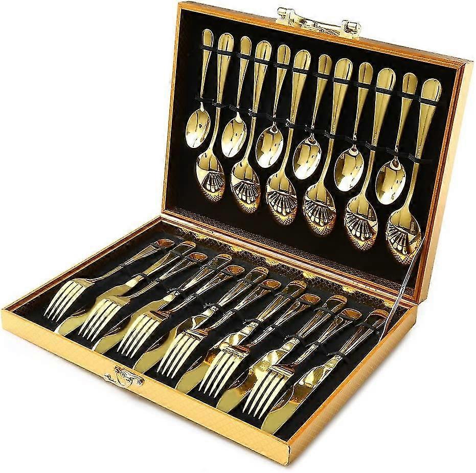 Cutlery Set Golden For 6 People, 24 Pieces Cutlery Set, Made Of Stainless Steel, Nickel-free, Rust-free, Hand-polished, For Home, Kitchen, Restaurant
