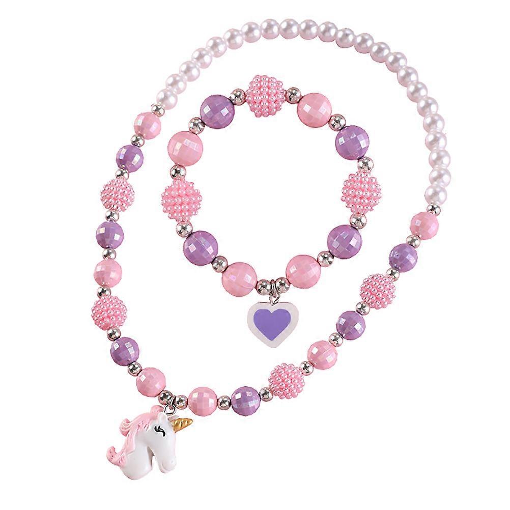 Children's Jewelry Set 2 Pcs Unique Lovely Cartoon Bracelet Neck Ornament Assorted Color Easy To Wear
