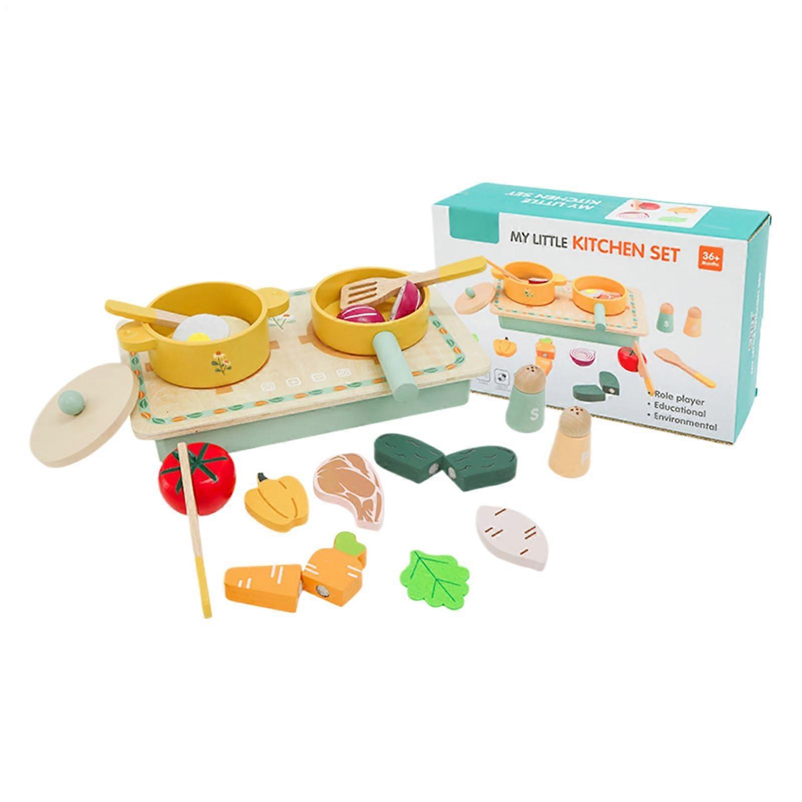 Toddler Kitchen Play Set Accessories - Wooden Cookware with Pots, Scoops, and Vegetables for Girls Age 3+
