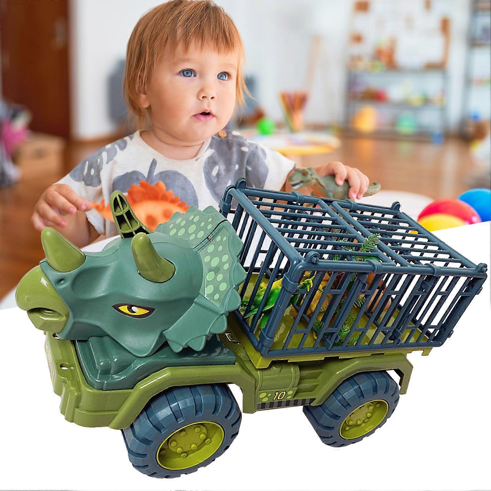 Dinosaur Transport Truck Playset Enlarged Carrier Vehicle Toy Playset with 3 Dinosaur Figure Tree Egg for Kids Triceratops