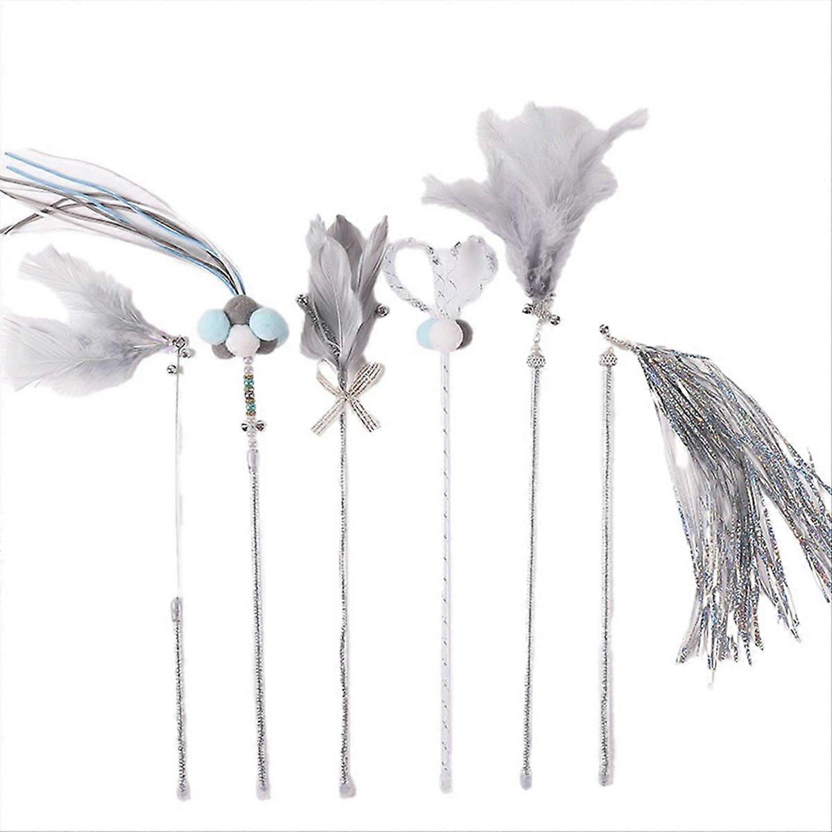 Cat Stick Ribbon Bite Cat Stick Bell Toy Set Cat Toy 6PCS