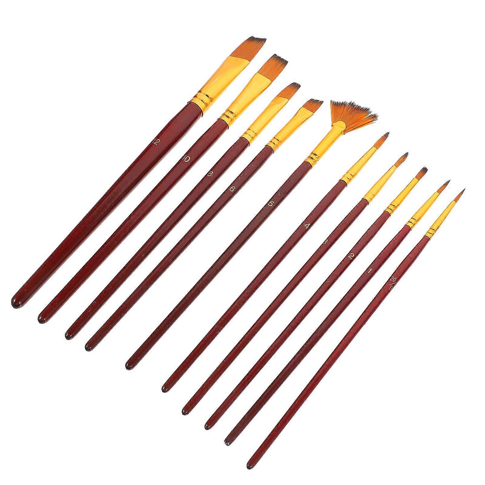 Water Color Brush Set Nylon Wood Aluminum Educational Use 10Pcs