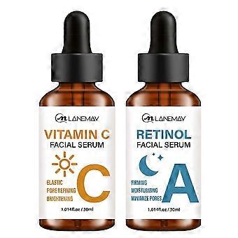 Vitamin C and Retinol Facial Essence Set - Anti-Aging Essence Liquid, Day and Night Facial Serum, Make Skin Glow and Firm