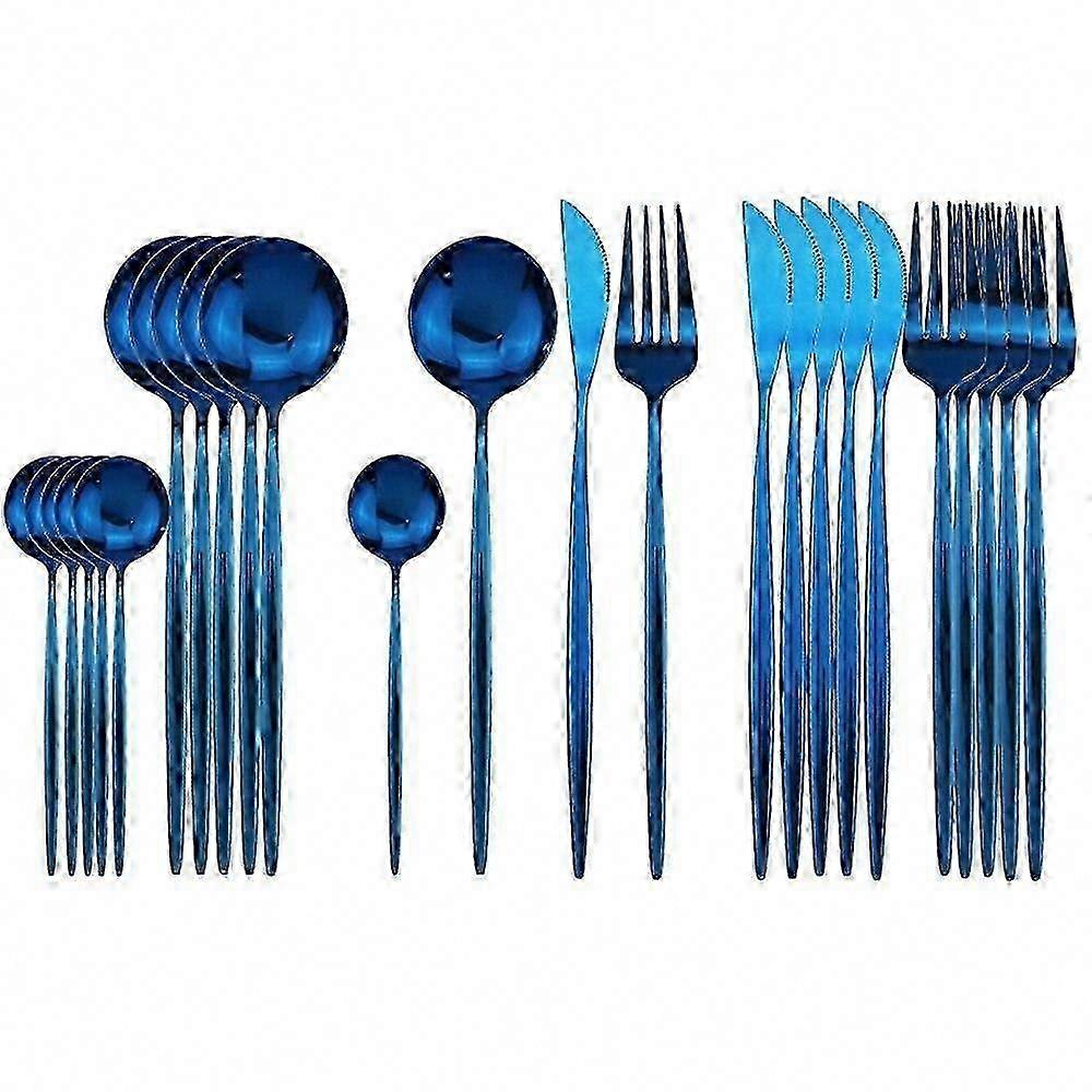 Stainless steel dinnerware set 24pcs - green gold cutlery set with knife fork spoon