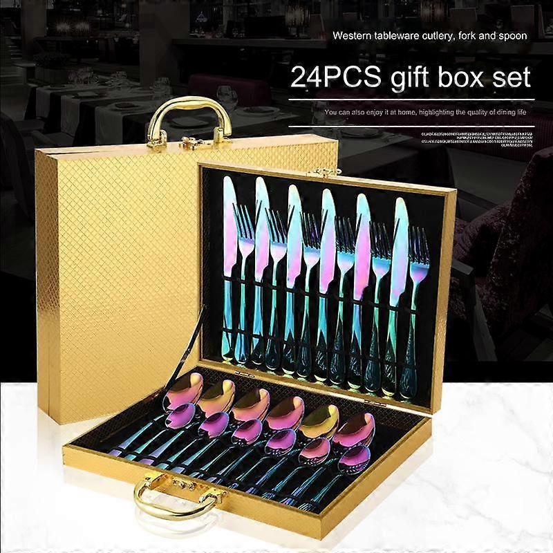 Stainless steel tableware 24-piece combination set knife, fork and spoon wooden box gift box set