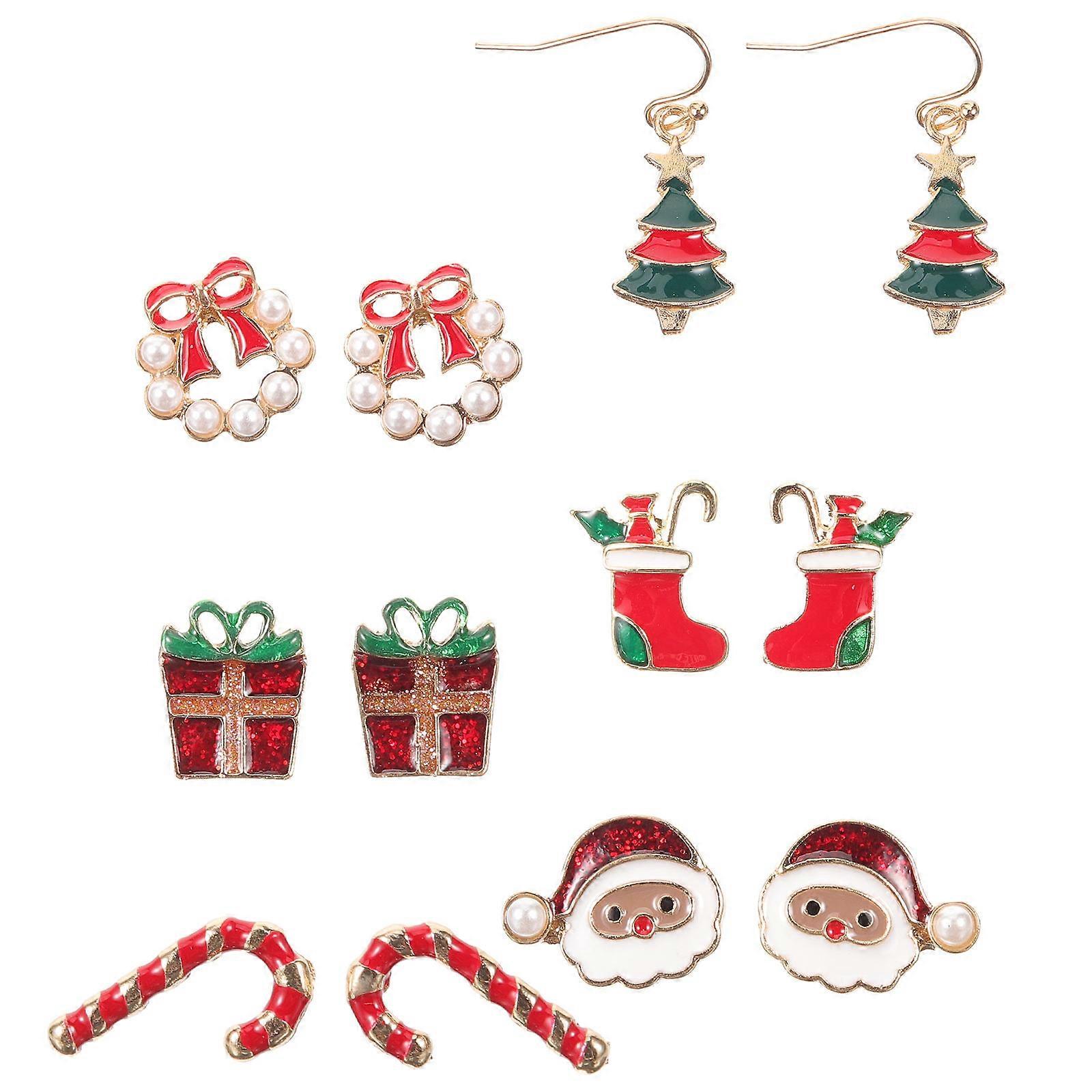 Holiday Earrings Set Festive Earrings Women Girls Christmas Earrings Bell Shaped Alloy Material Ear Decoration 6 Pairs