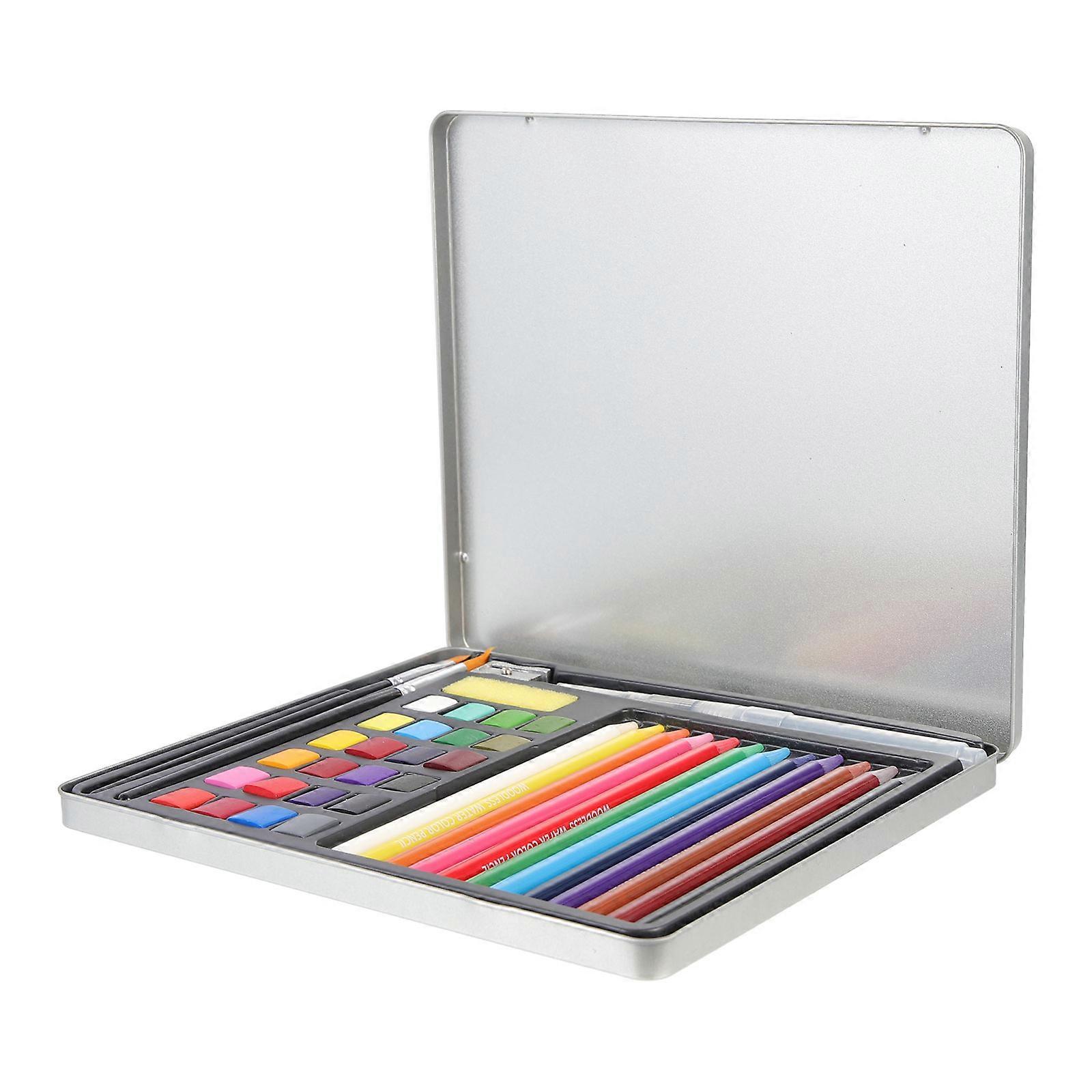 Watercolor Travel Set Artists Diy Art Projects Plastic Material Lightweight Portable 21.50x19.00x1.30Cm 1Set
